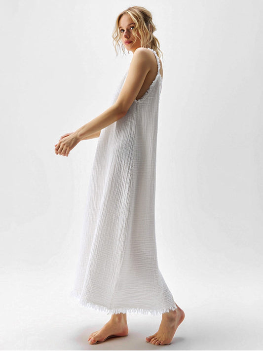 Fashionable Double-layered Pure White Nightgown